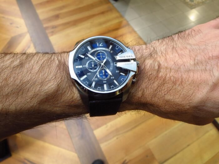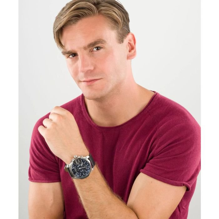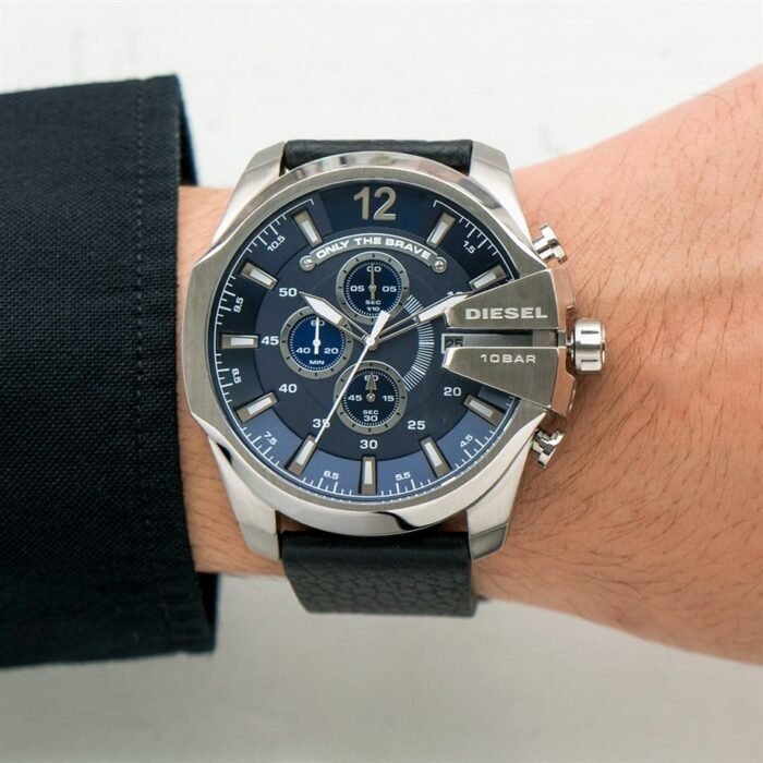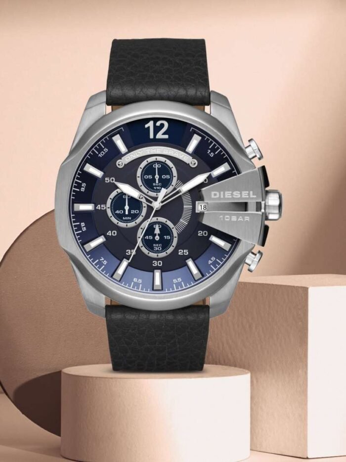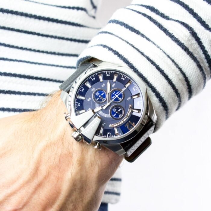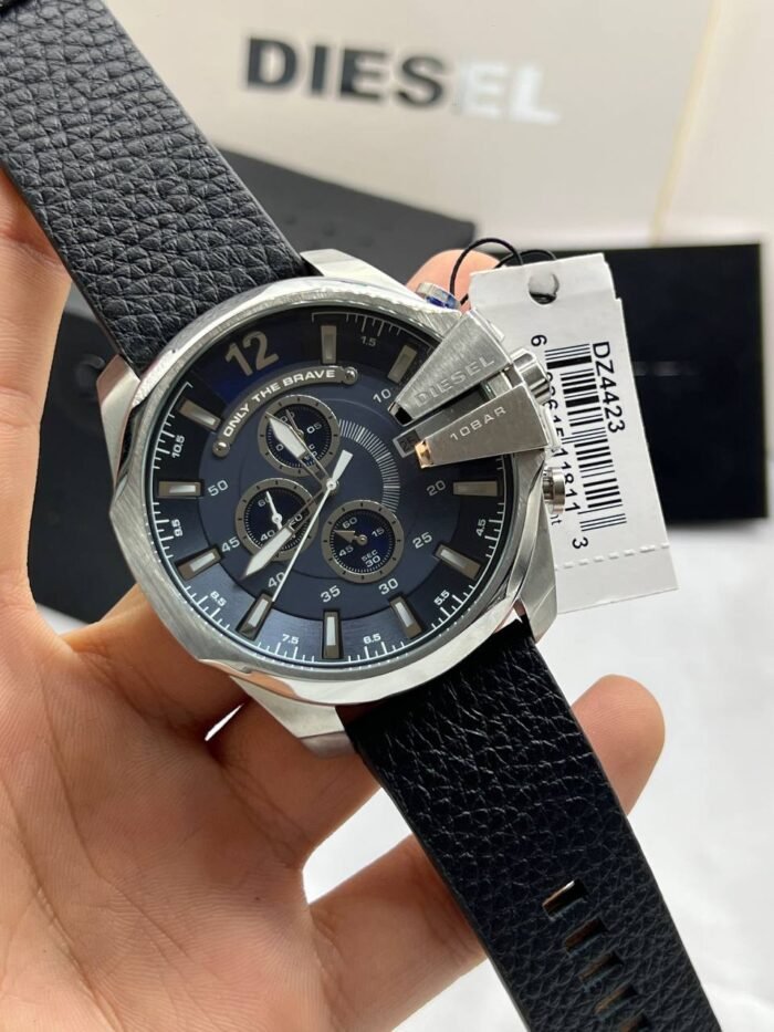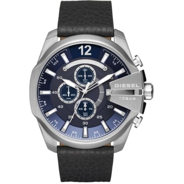 ساعة ديزل Diesel للرجال أصلية موديل Mega Chief DZ4423 لون ازرق و استيك جلد طبيعي لون اسود.