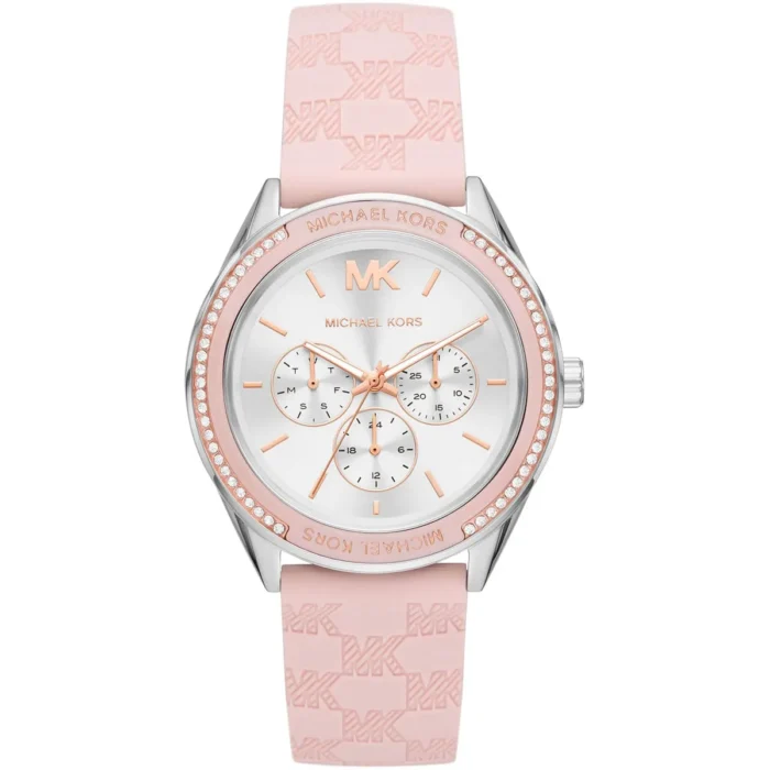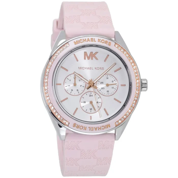 ساعة مايكل كورس Michael Kors للنساء أصلية موديل Jessa MK7268 لون فضي و استيك سيليكون مطاط لون وردي.