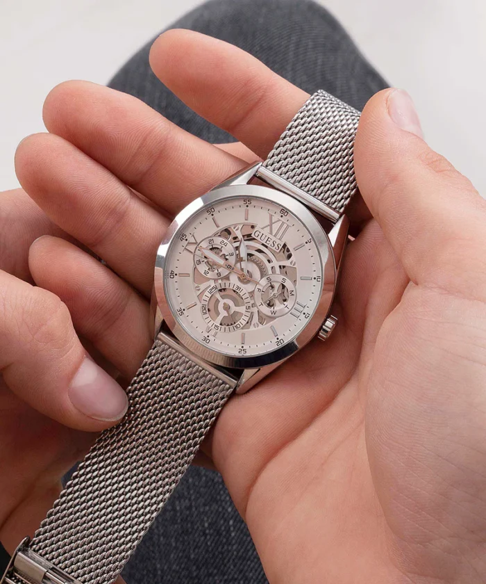 ساعة جيس Guess للرجال أصلية موديل Tailor GW0368G1 لون فضي و استيك معدن ستانلس لون فضي.