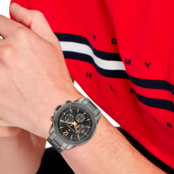 ساعة تومي هيلفيغر للرجال أصلية موديل 1792061 لون رمادي و استيك معدن ستانلس لون رمادي.