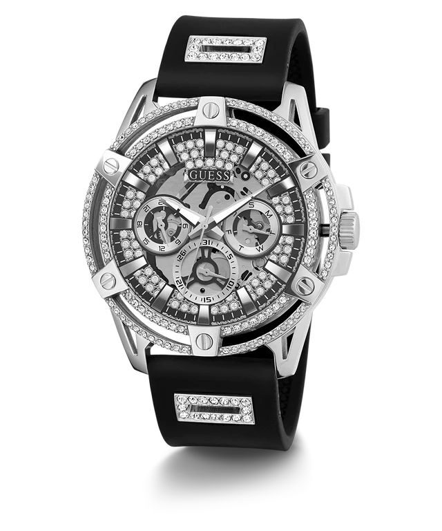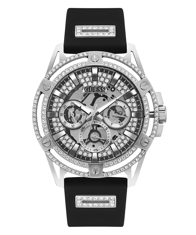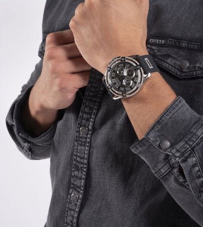 ساعة جيس Guess للرجال أصلية موديل GW0537G1 لون فضي و استيك سيليكون مطاط لون اسود.