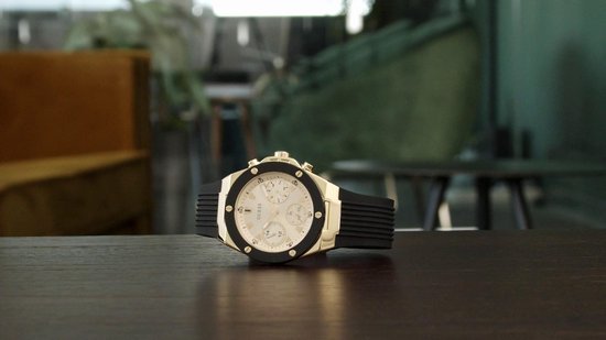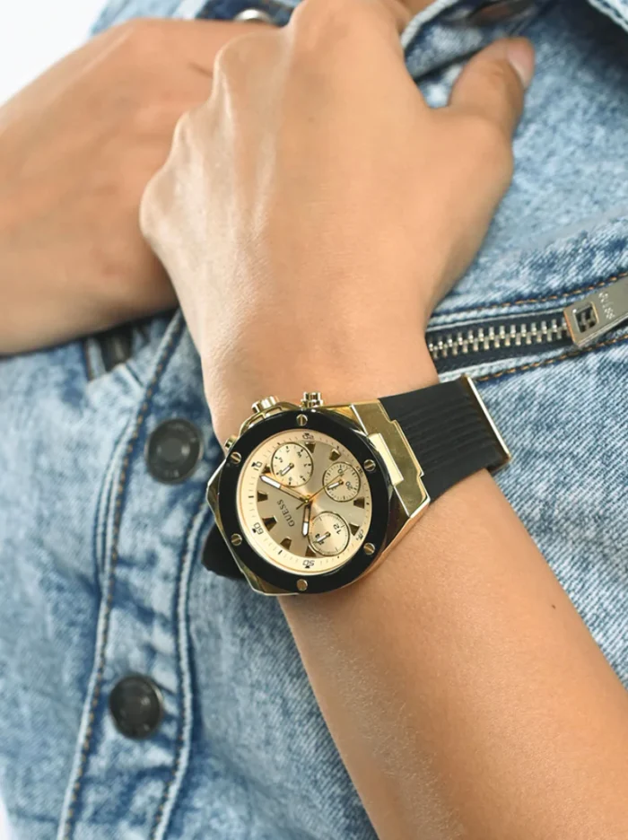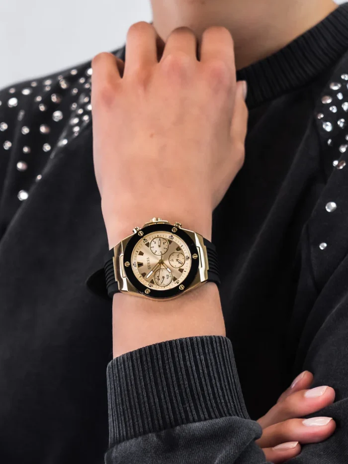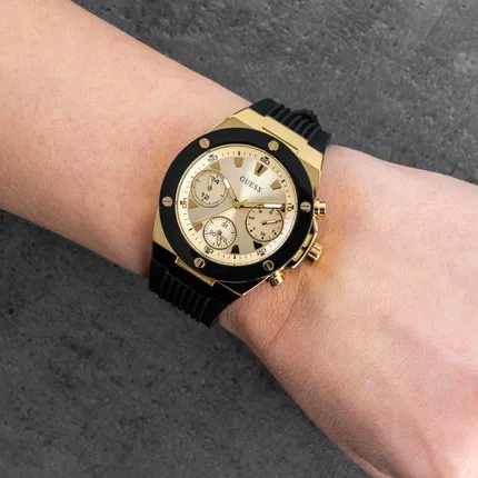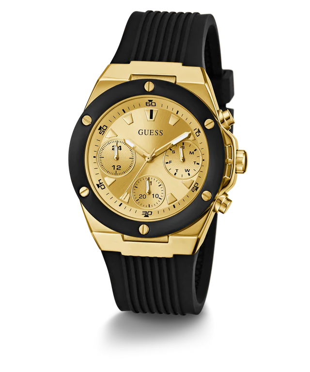 ساعة جيس Guess للنساء أصلية موديل GW0030L2 لون ذهبي و استيك سيليكون مطاط لون اسود.