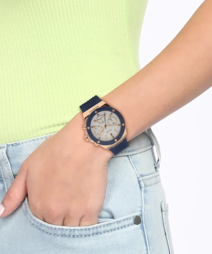 ساعة جيس للنساء أصلية موديل GW0030L5 لون ابيض واستيك سيليكون مطاط لون ازرق.