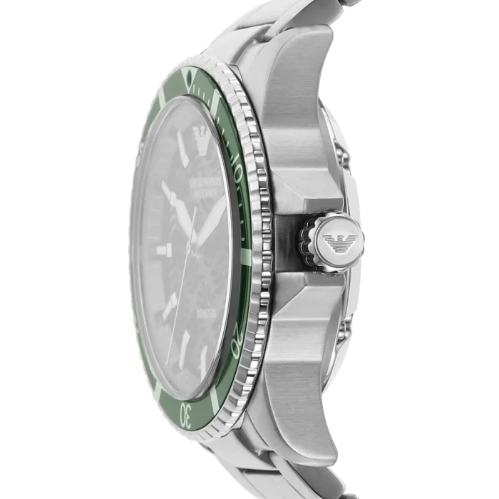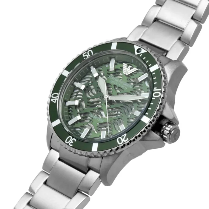 ساعة امبوريو ارماني Emporio Armani للرجال أصلية موديل AR60061 لون اخضر و استيك معدن ستانلس لون فضي.