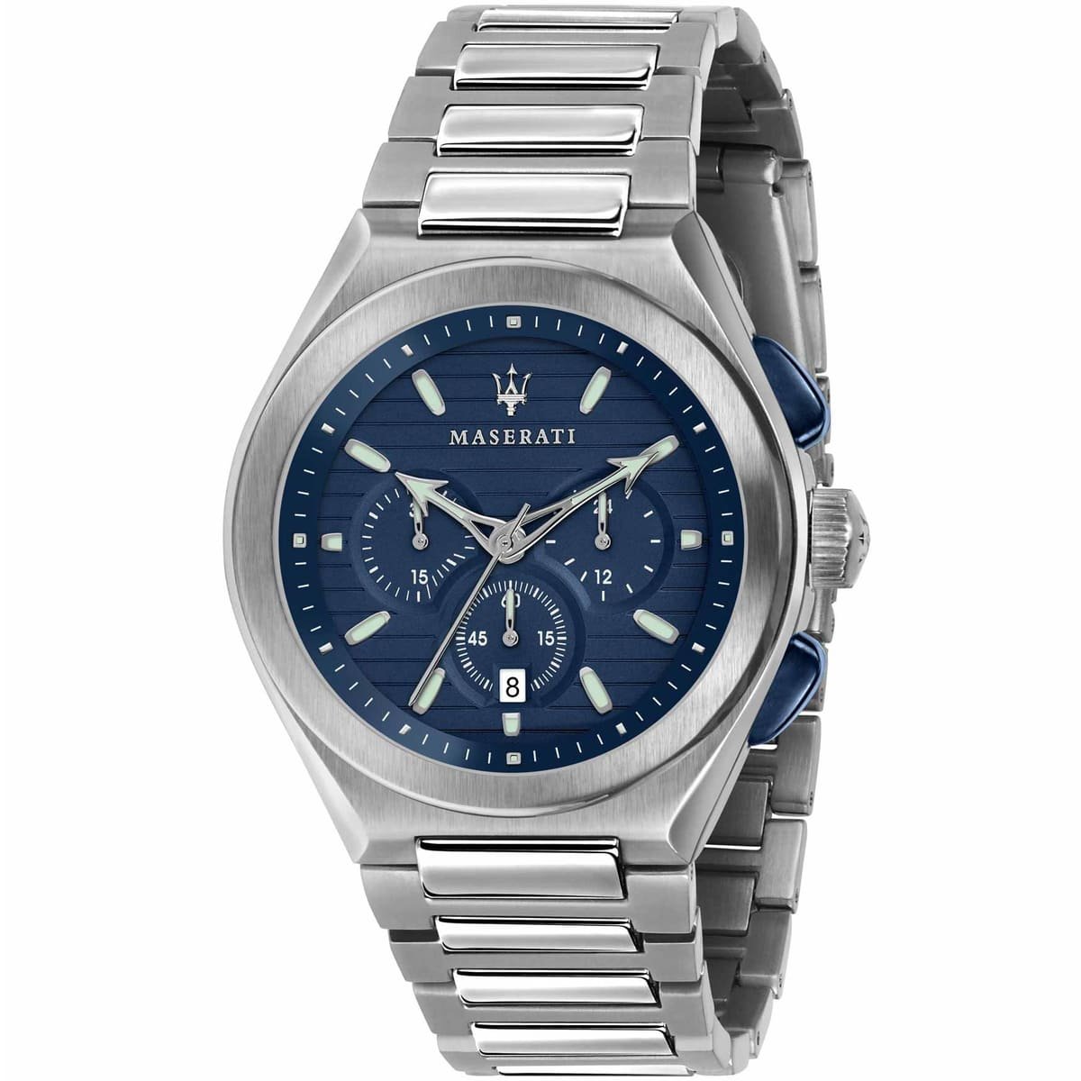 ساعة مازيراتي للرجال أصلية موديل Triconic R8873639001 لون ازرق و استيك معدن ستانلس لون فضي.