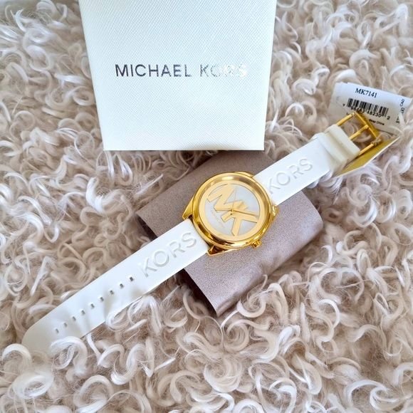 ساعة مايكل كورس للنساء أصلية موديل MK7141 لون ابيض و استيك سيليكون مطاط لون ابيض.