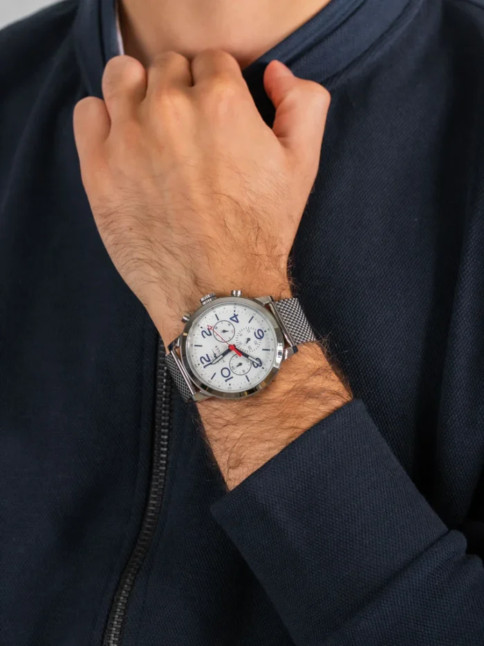 ساعة تومي هيلفيغر Tommy Hilfiger للرجال أصلية موديل 1791233 Jake لون ابيض و استيك معدن ستانلس لون فضي.