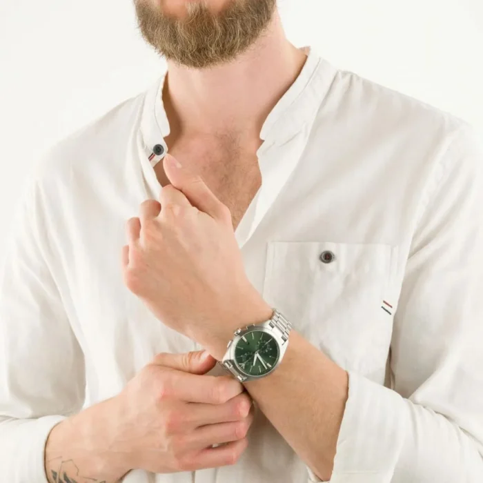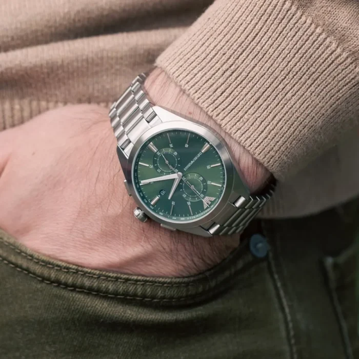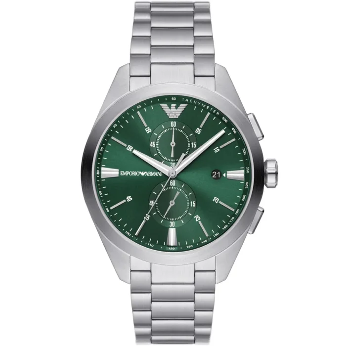 ساعة امبوريو ارماني للرجال أصلية موديل AR11480 Claudio لون اخضر و استيك معدن ستانلس لون فضي.