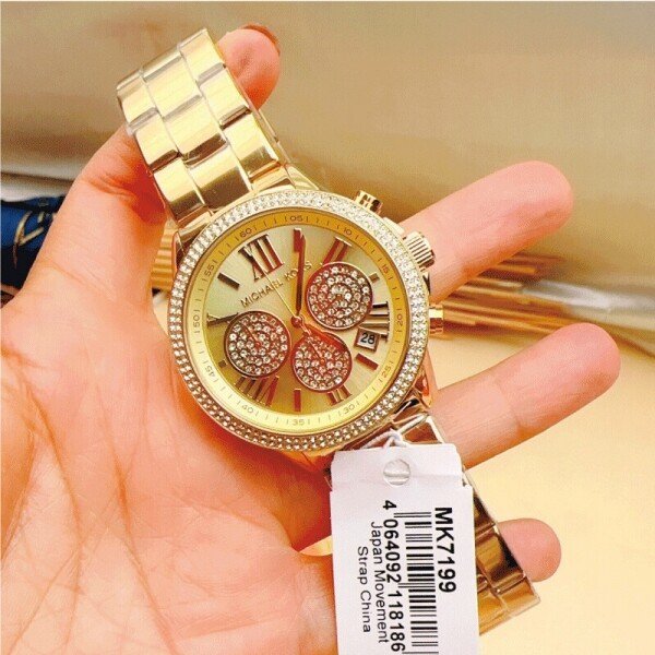 ساعة مايكل كورس للنساء أصلية موديل MK7199 لون ذهبي و استيك معدن ستانلس لون ذهبي.