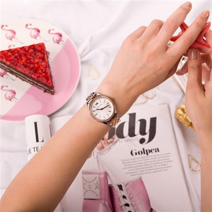 ساعة مايكل كورس للنساء أصلية موديل MK6642 لون ابيض و استيك معدن ستانلس متعدد الالوان.