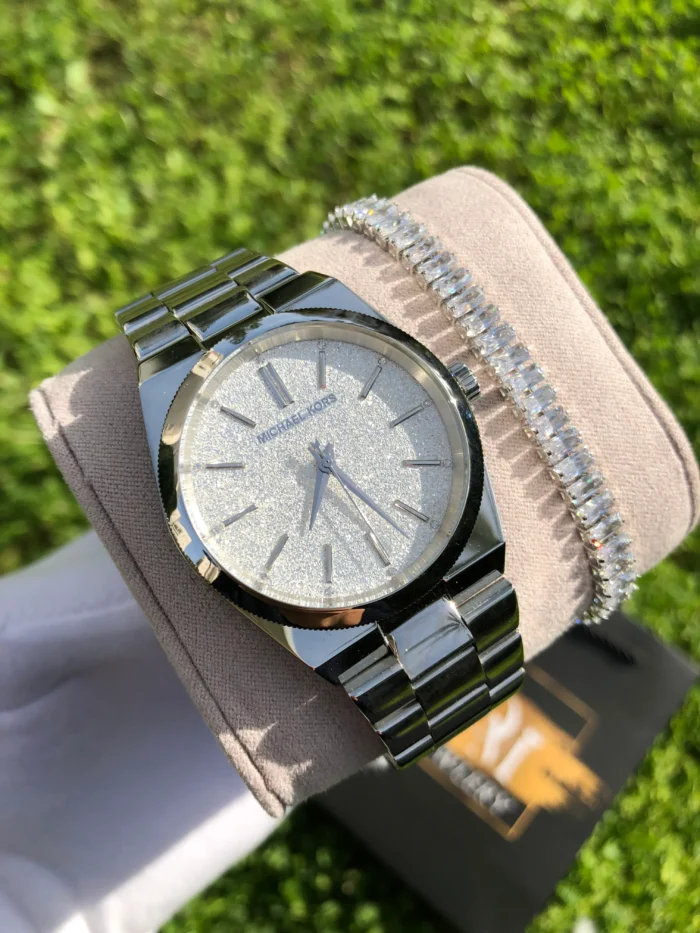 ساعة مايكل كورس للنساء أصلية موديل MK6626 لون فضي و استيك معدن ستانلس لون فضي.