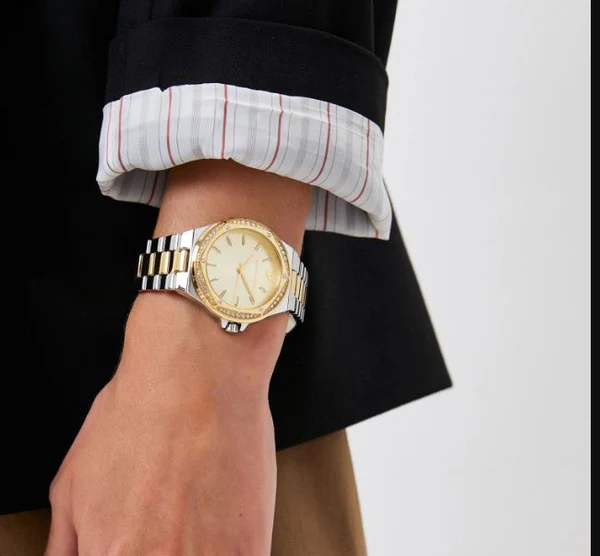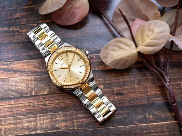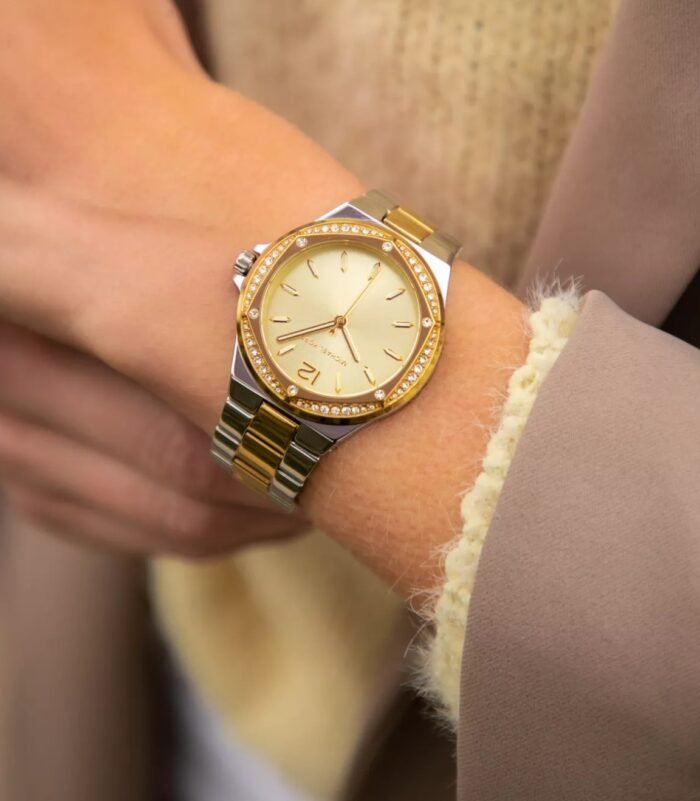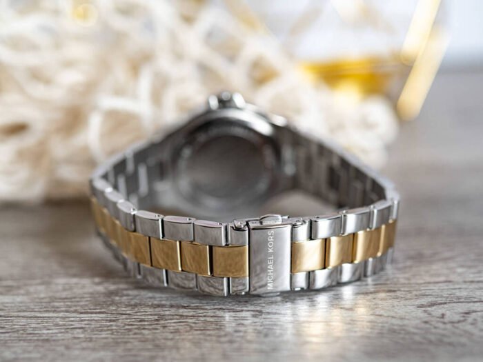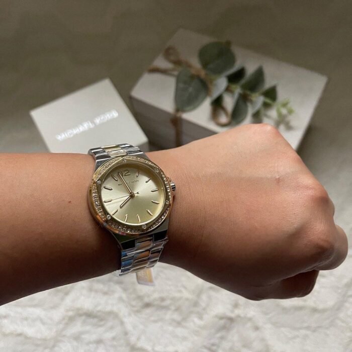 ساعة مايكل كورس للنساء أصلية موديل MK6988 لون ذهبي و استيك معدن ستانلس لون فضي * ذهبي.