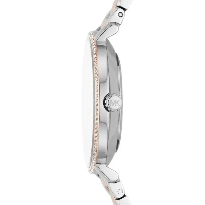 ساعة مايكل كورس للنساء ألأصلية موديل MK1066 لون ابيض و استيك معدن ستانلس لون فضي * روز جولد.