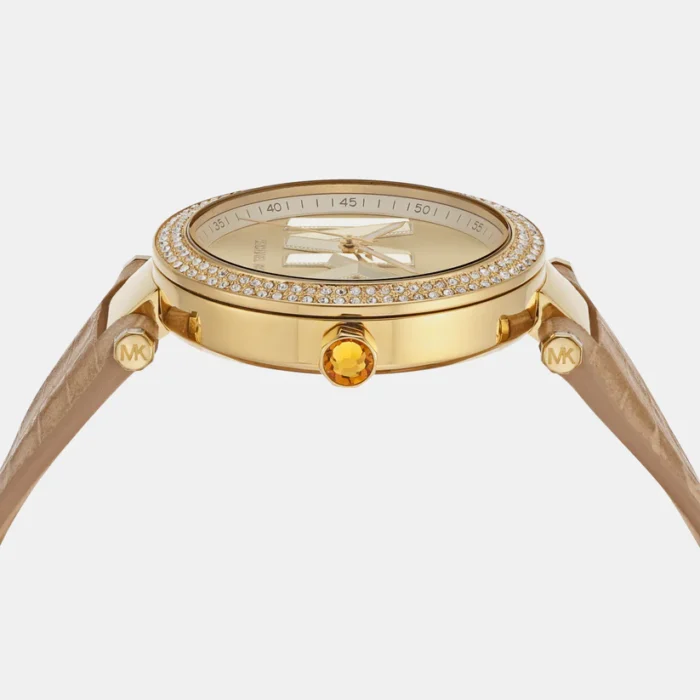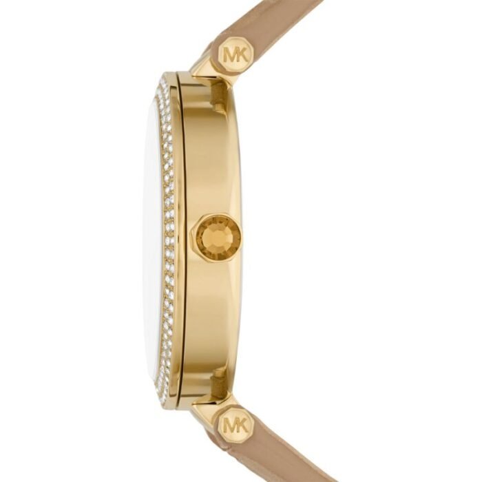 ساعة مايكل كورس للنساء أصلية موديل MK4725 لون ذهبي و استيك جلد طبيعي لون هاڤان.