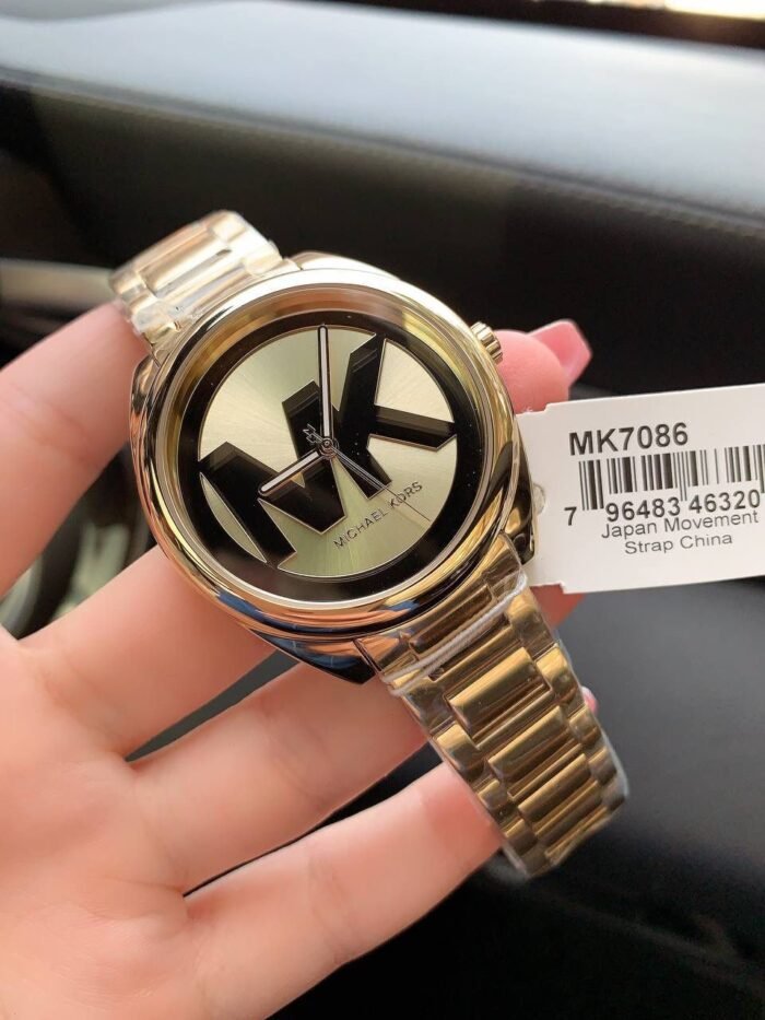 ساعة مايكل كورس للنساء أصلية موديل MK7086 لون ذهبي و استيك معدن ستانلس لون ذهبي.