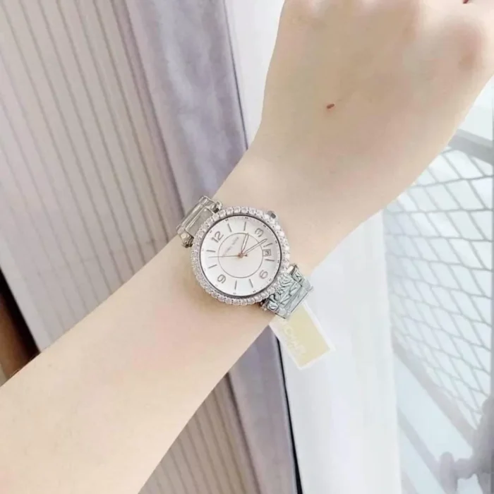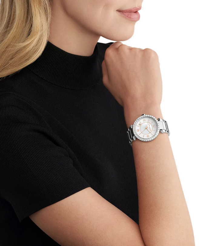 ساعة مايكل كورس للنساء أصلية موديل MK4694 لون ابيض و استيك معدن ستانلس لون فضي.