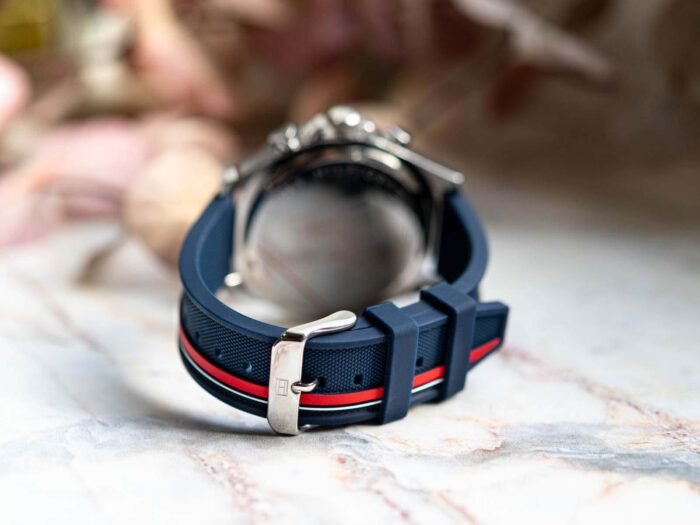 ساعة تومي هيلفيغر للرجال أصلية موديل 1792083 لون ازرق و استيك سيليكون مطاط لون ازرق.