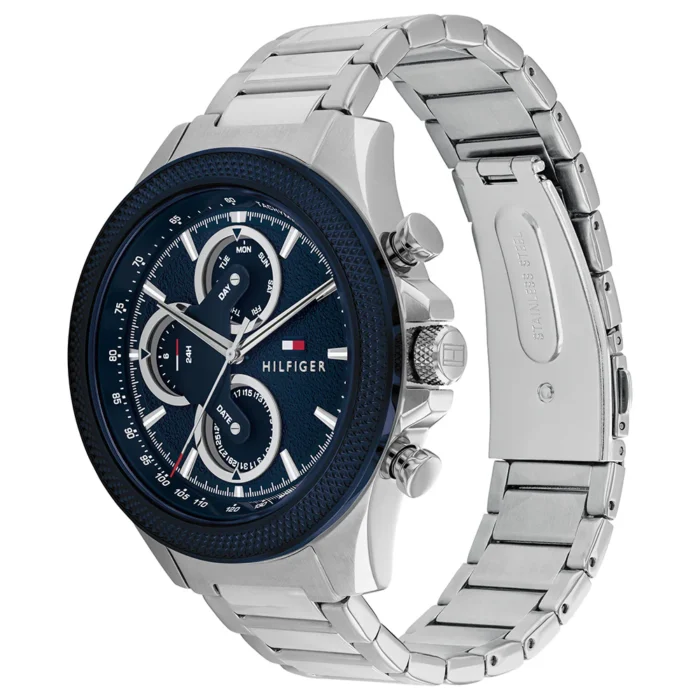 ساعة تومي هيلفيغر للرجال أصلية موديل 1792080 لون ازرق و استيك معدن ستانلس لون فضي.