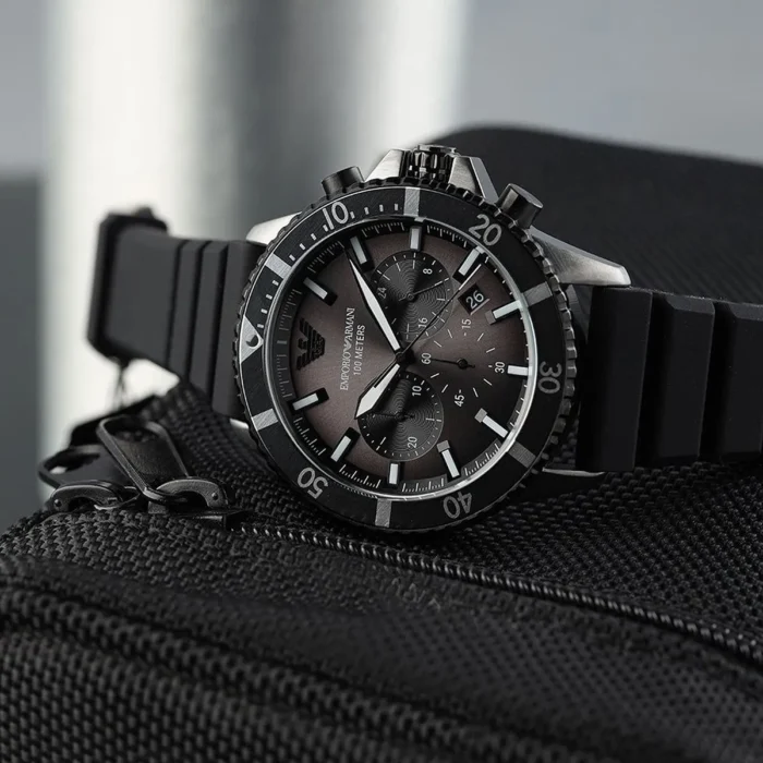 ساعة امبوريو ارماني Emporio Armani للرجال أصلية موديل Diver AR11515 لون اسود و استيك سيليكون مطاط لون اسود.