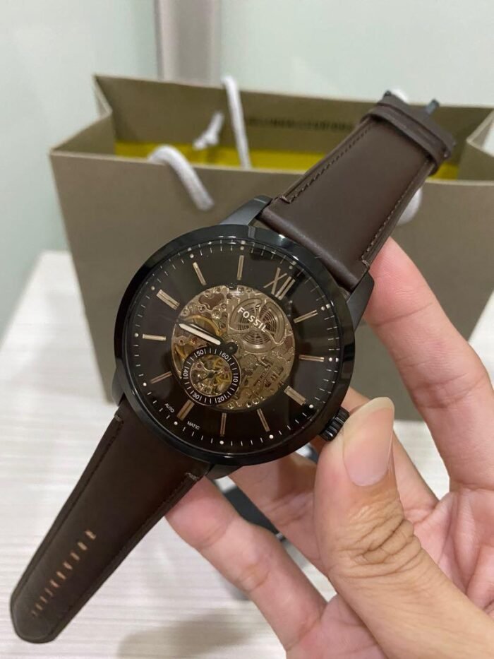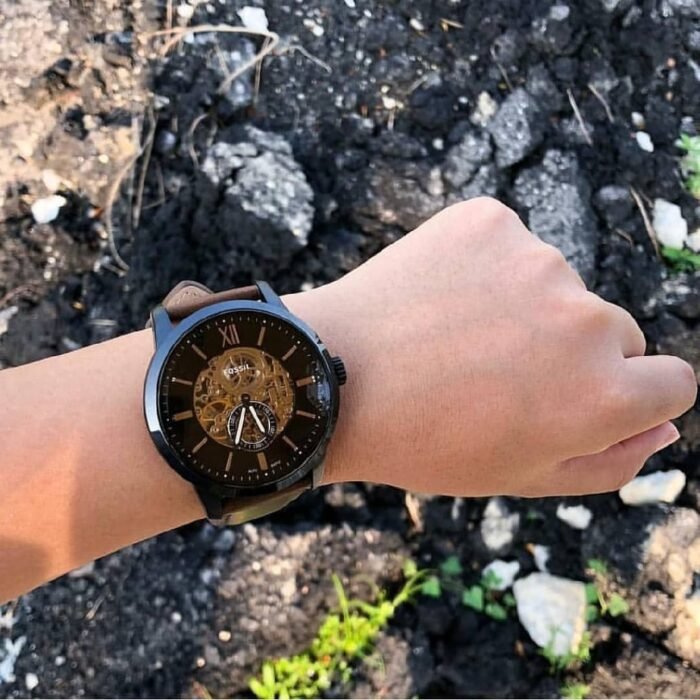 ساعة فوسيل للرجال اصلية موديل (تاونز مان) Townsman ME3155 لون بنى واستيك جلد طبيعي لون بنى