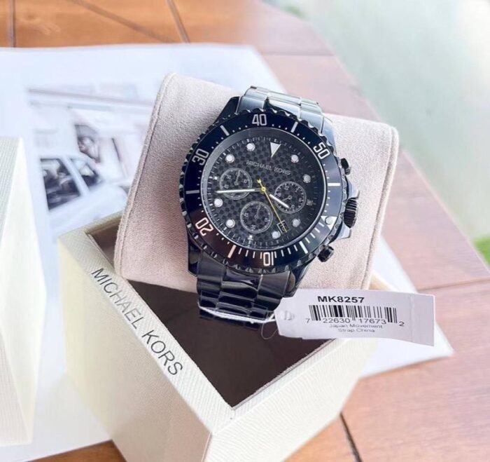 ساعة مايكل كورس للرجال أصلية موديل MK8257 لون اسود و اوستيك معدن ستانلس لون اسود.