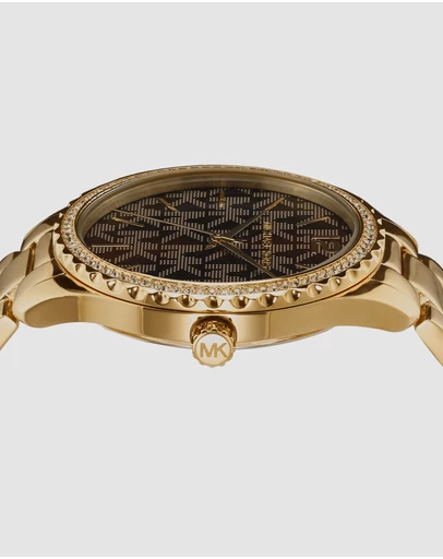 ساعة مايكل كورس للنساء أصلية موديل MK7296 لون بني و اوستيك معدن ستانلس لون ذهبي.