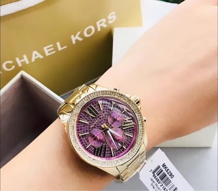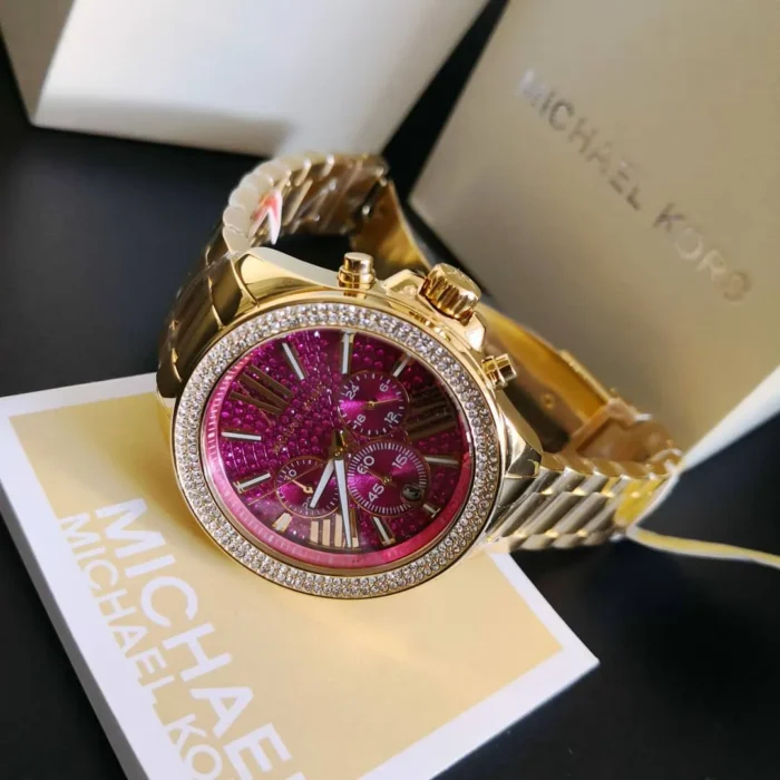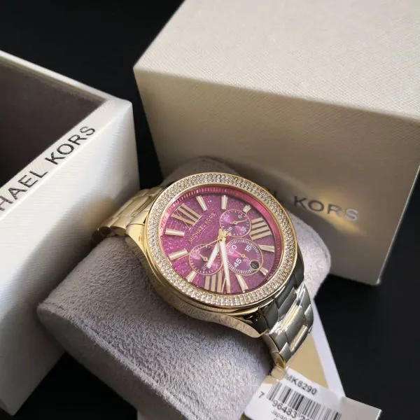 ساعة مايكل كورس للنساء أصلية موديل MK6290 لون بينك و اوستيك معدن ستانلس لون ذهبي.
