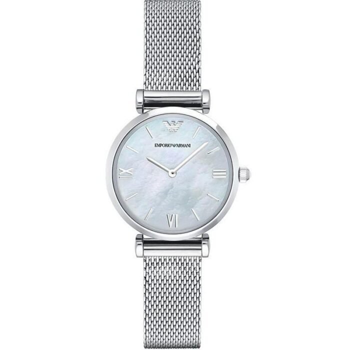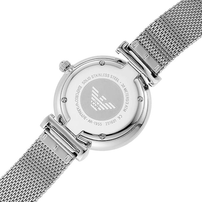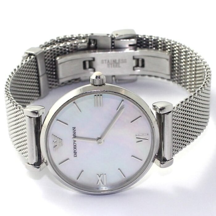 ساعة امبوريو ارماني اصليه للنساء موديل AR1955 لون ابيض و اوستيك معدن ستانلس لون فضي.