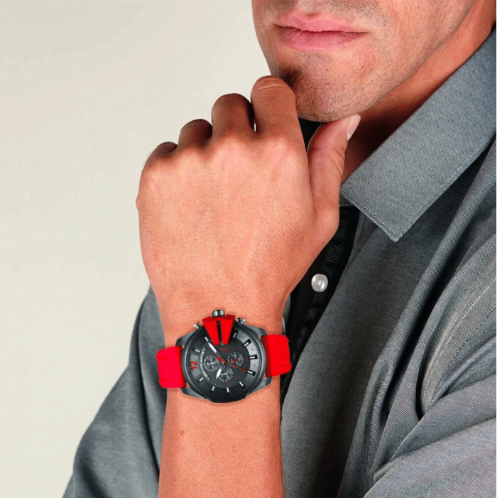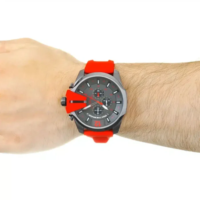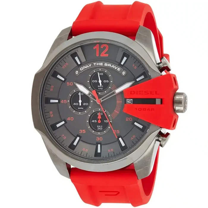 ساعة ديزل للرجال اصلية موديل (ميجا شيف) Mega Chief DZ4427 لون رمادي واستيك سيليكون مطاط لون احمر.