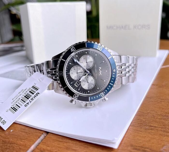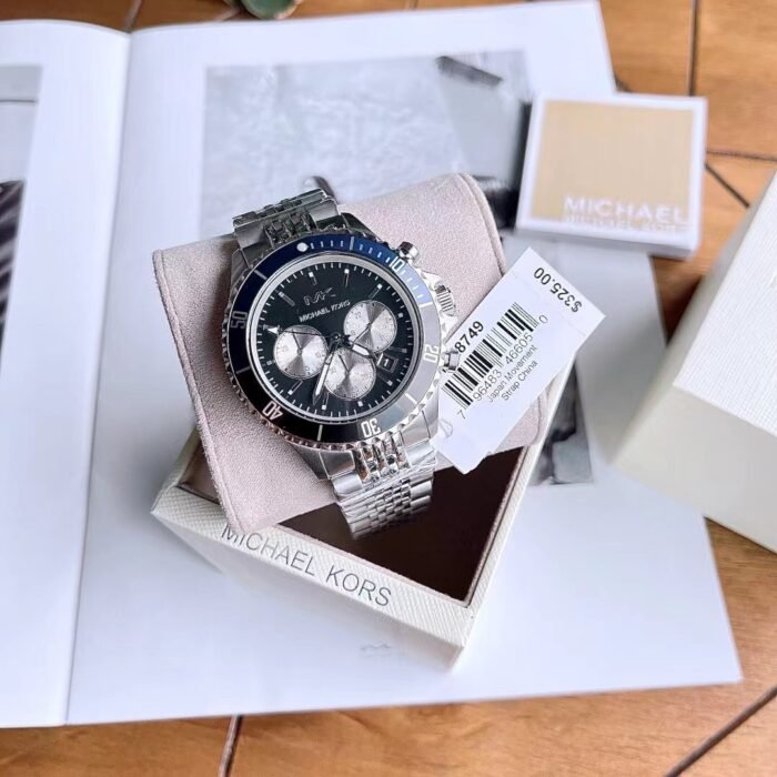 ساعة مايكل كورس أصلية للرجال موديل MK8749 لون اسود و اوستيك معدن ستانلس لون فضي.