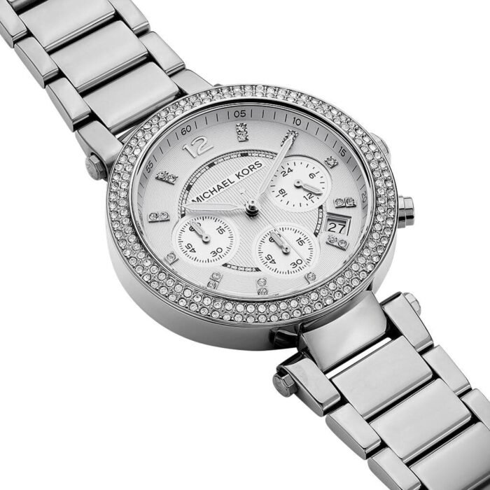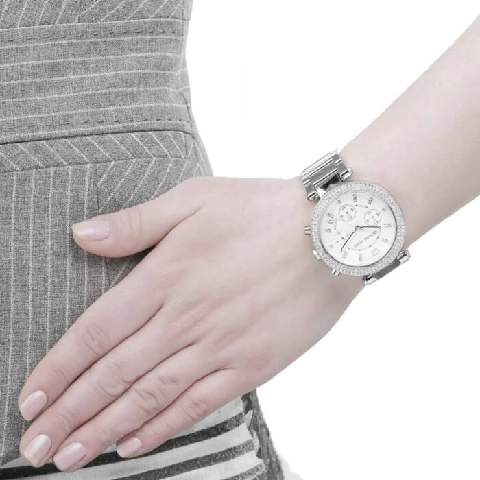 ساعة مايكل كورس للنساء اصلية موديل (باركر) Parker MK5353 بلون فضي واستيك معدن بلون فضي.