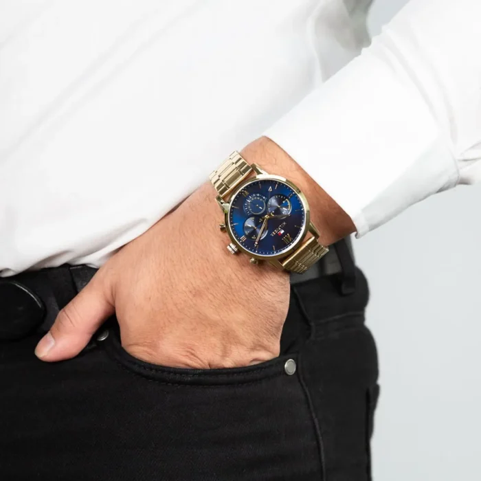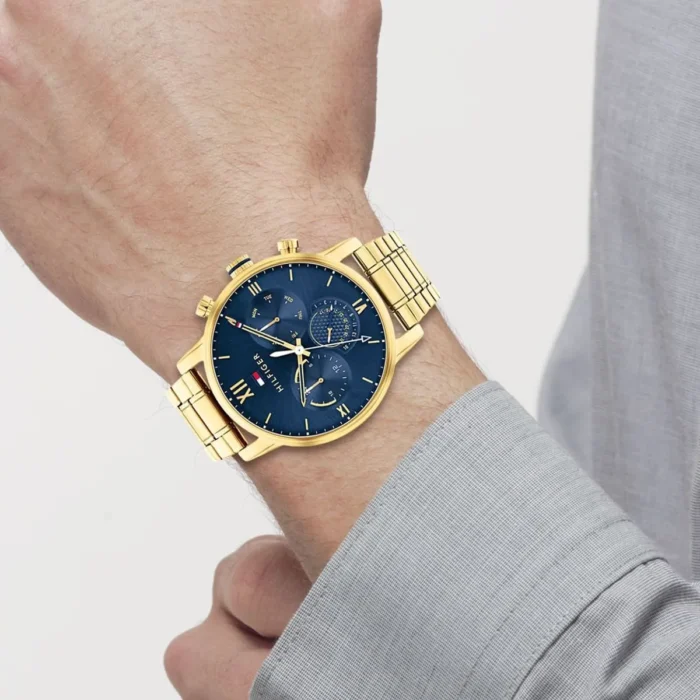 ساعة تومي هيلفيغر اصليه للرجال موديل 1782198 لون ازرق واوستيك معدن ستانلس لون ذهبي.