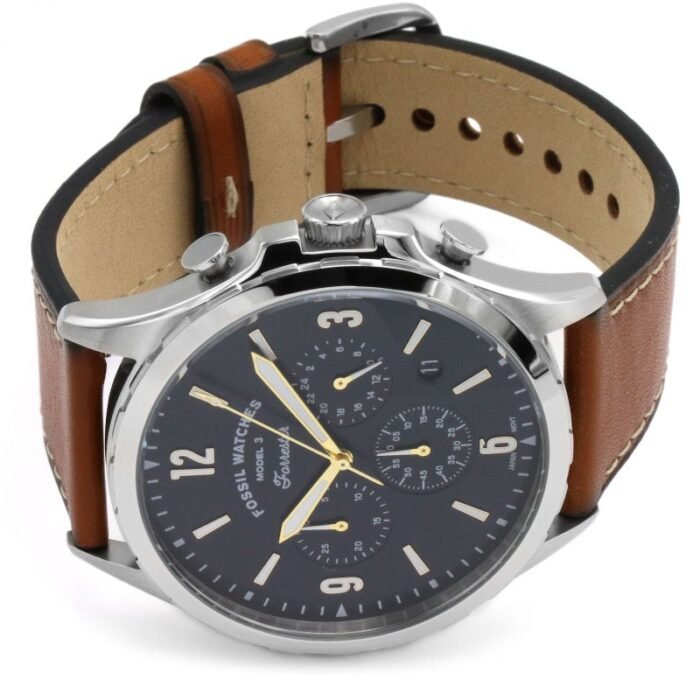 ساعة فوسيل اصليه للرجال موديل fs5607 بلون ازرق واوستيك جلد طبيعي بلون بني.