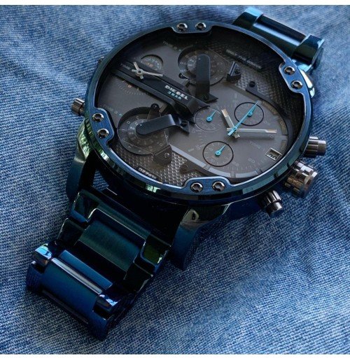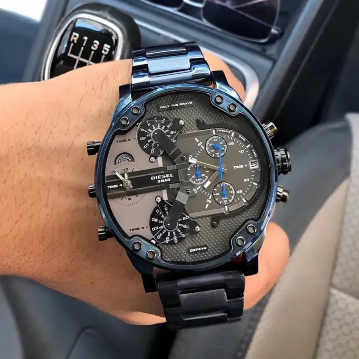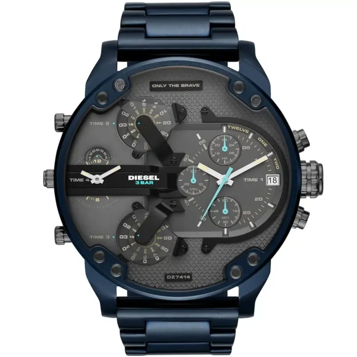 ساعة ديزل للرجال اصلية موديل MR Daddy DZ7414 لون رمادي واستيك معدن ستانلس لون ازرق.