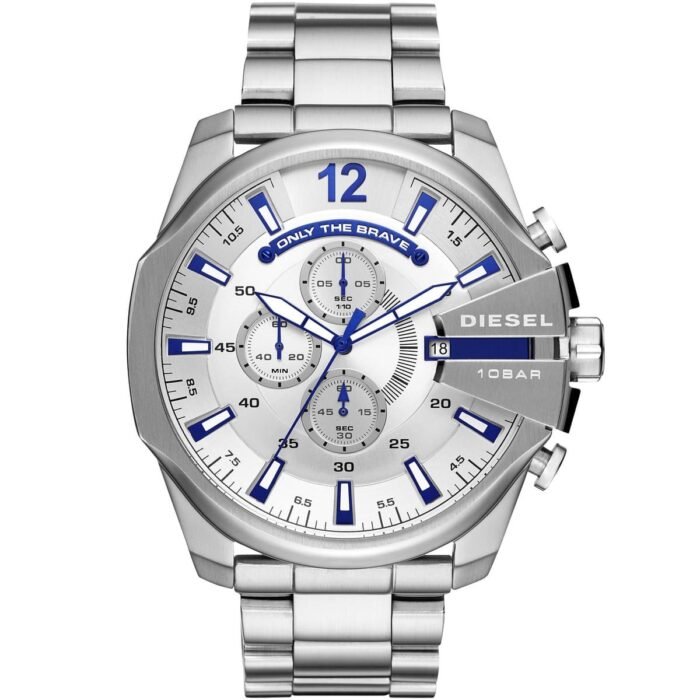 ساعة ديزل رجالى اصلية موديل (ميجا شيف) Mega Chief DZ4477 بلون فضى واستيك معدن لون فضي.
