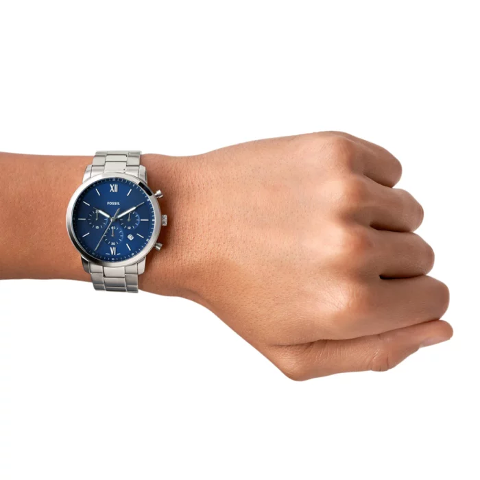 ساعة فوسيل للرجال اصلية موديل (نيوترا) Neutra FS5792 بلون ازرق واستيك معدن فضي.