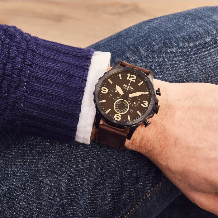 ساعة فوسيل للرجال اصلية موديل (نايت) Nate JR1487 بلون بني واستيك جلد طبيعي بلون بني.