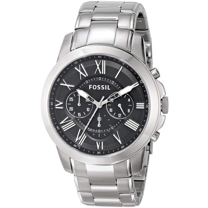 ساعة فوسيل للرجال أصلية موديل (جرانت) Grant FS4736 بلون اسود و استيك معدن بلون فضي.