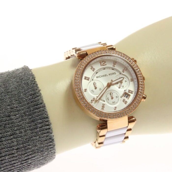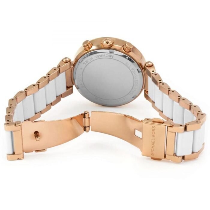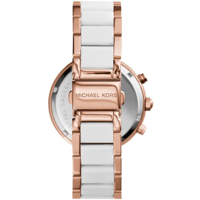 ساعة مايكل كورس للنساء اصلية موديل (باركر) Parker MK5774 بلون ابيض واستيك معدن بلون ابيض * روز جولد.