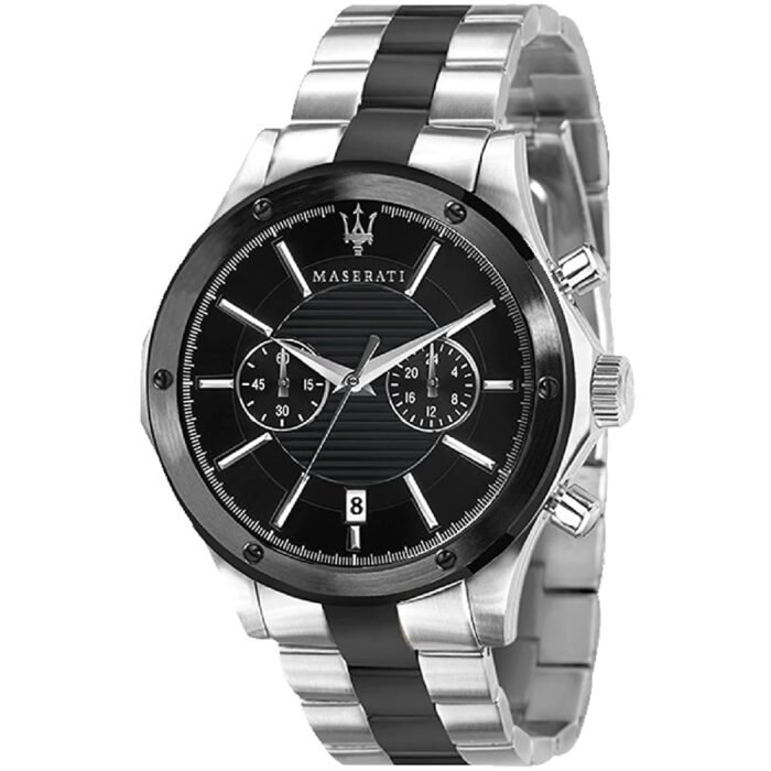 ساعة مازيراتي للرجال أصلية موديل R8873627003 Circuito بلون اسود و استيك معدن ستانلس ستيل بلون فضي * اسود.