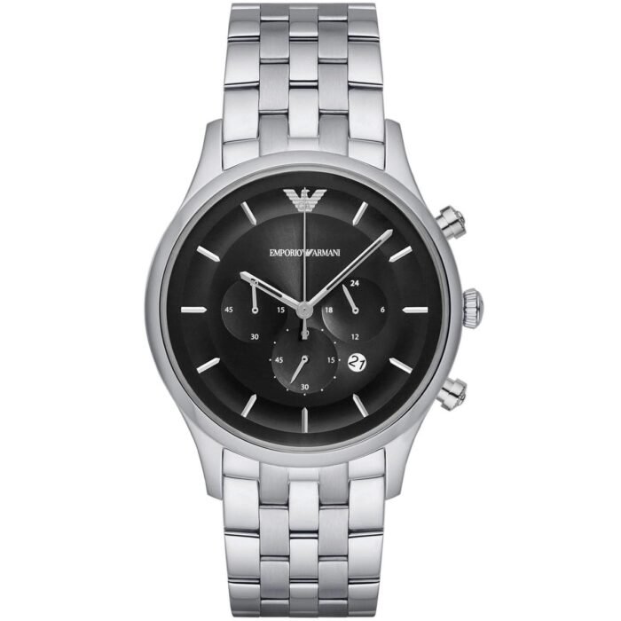 ساعة امبوريو ارماني للرجال اصلية موديل Lambda AR11017 لون اسود واستيك معدنستانلس لون فضي.