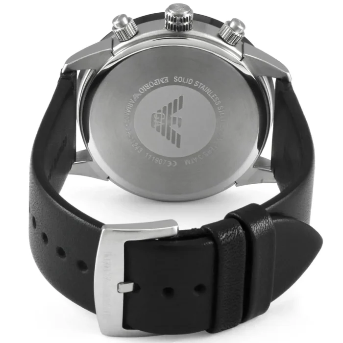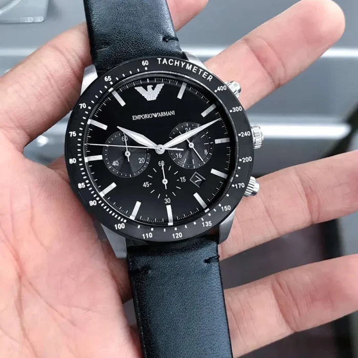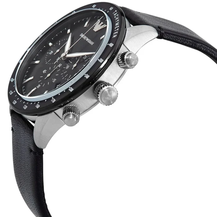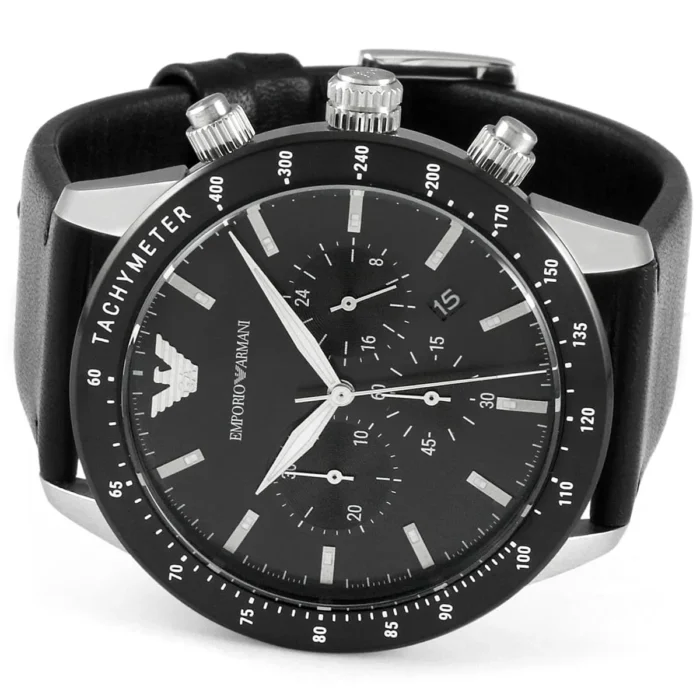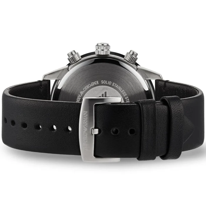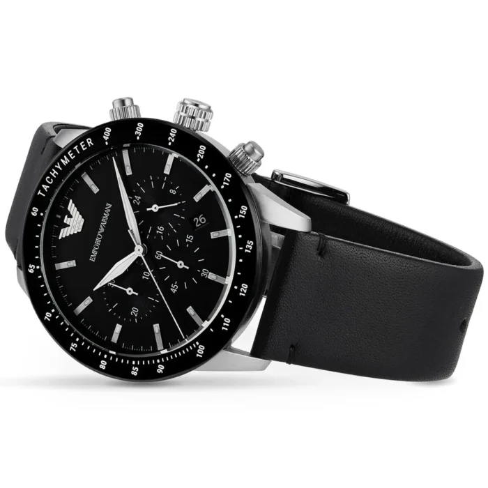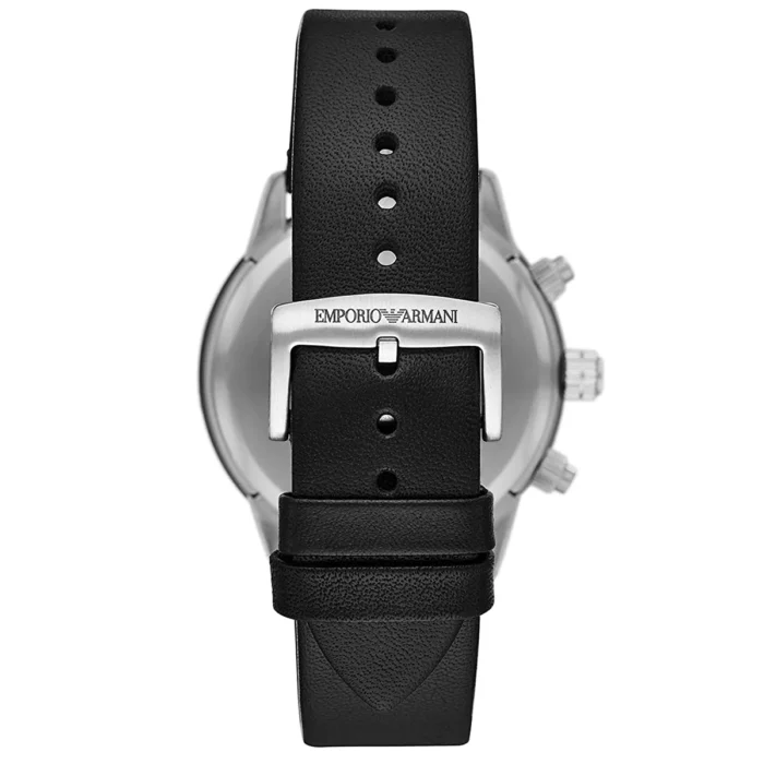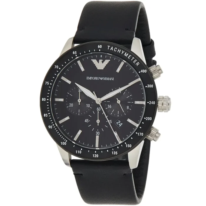ساعة امبوريو ارماني للرجال أصلية موديل Mario AR11243 لون اسود و استيك جلد طبيعي لون اسود.