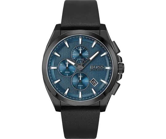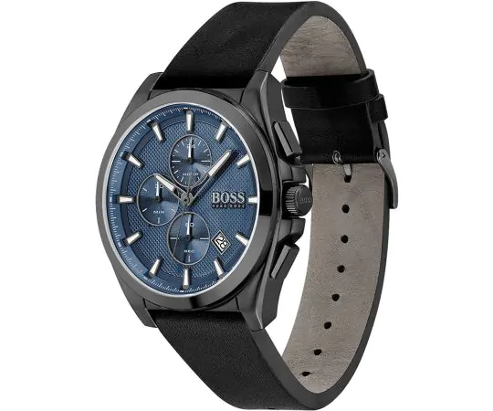 ساعة هوغو بوس للرجال اصلية موديل 1513883 بلون ازرق و اوستيك جلد طبيعي لون اسود.