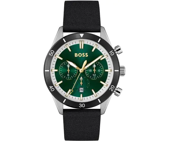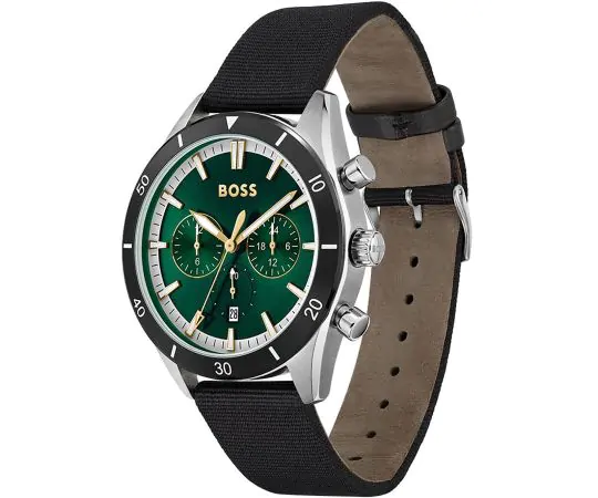 ساعة هوغو بوس للرجال اصلية موديل 1513936 بلون اخضر واوستيك جلد طبيعي لون اسود.