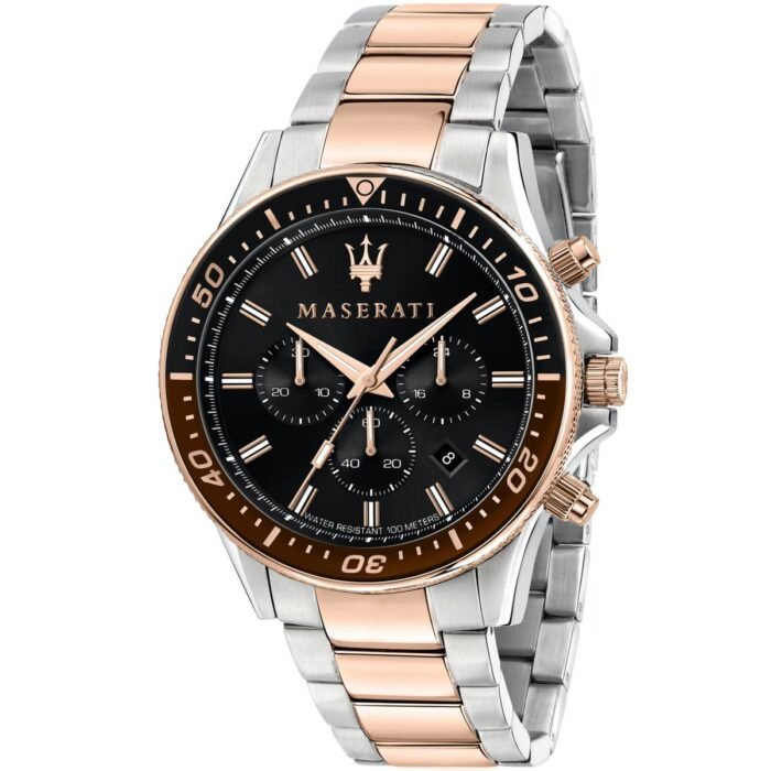 ساعة مازيراتي للرجال أصلية موديل R8873640009 Sfida لون اسود واوستيك معدن لون فضي * روز جولد.