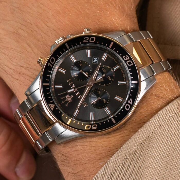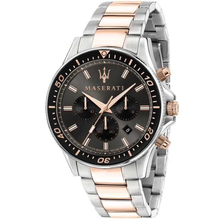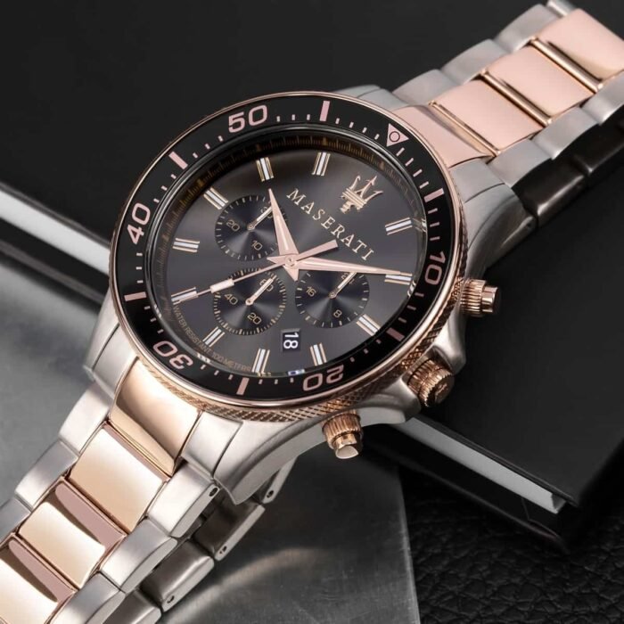 ساعة مازيراتي للرجال أصلية موديل R8873640002 Sfida لون اسود واستيك معدن لون فضي * روز جولد.
