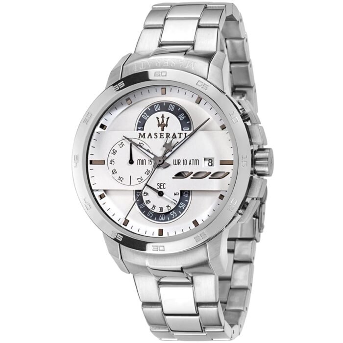 ساعة مازيراتي للرجال أصلية موديل R8873619004 Ingegno لون ابيض واوستيك معدن لون فضي.