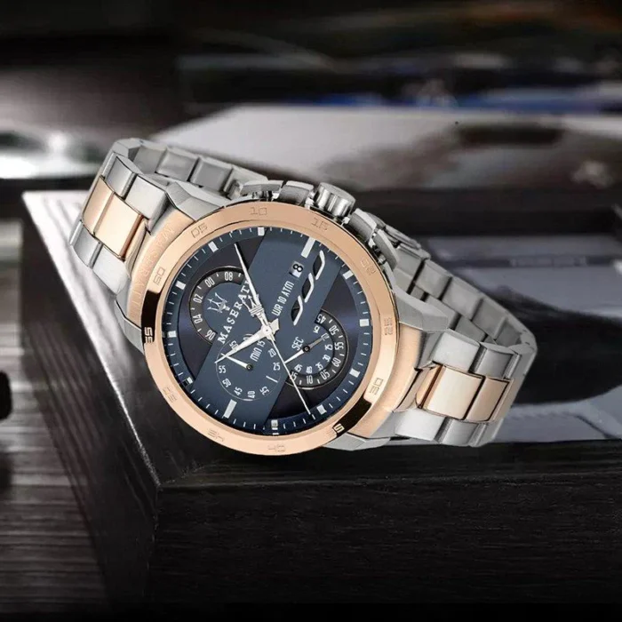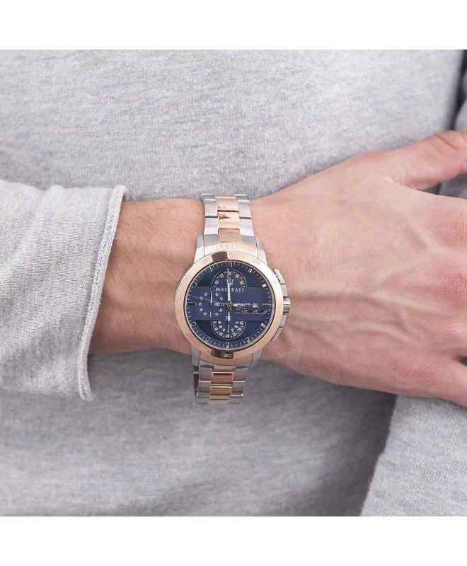 ساعة مازيراتي للرجال اصلية موديل Ingegno R8873619002 لون ازرق و استيك لون فضي * روز جولد.
