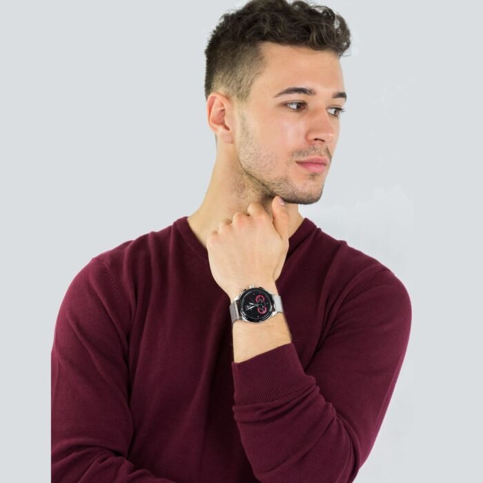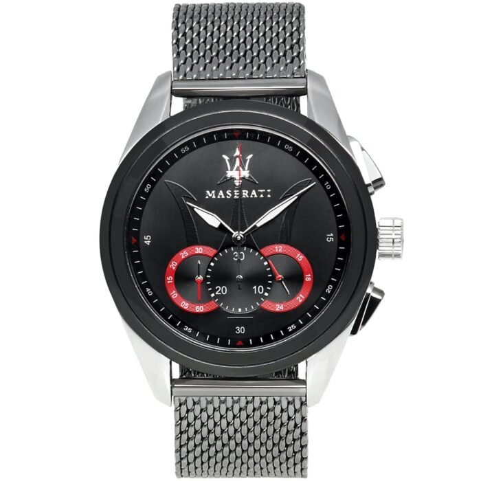 ساعة مازيراتي للرجال أصلية موديل R8873612005 Traguardo لون اسود و استيك معدن ستانلس لون فضي.