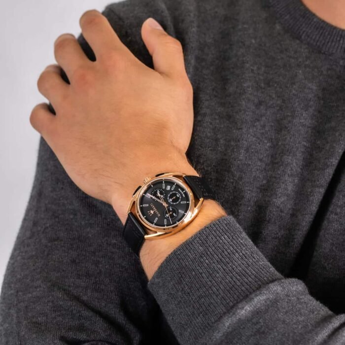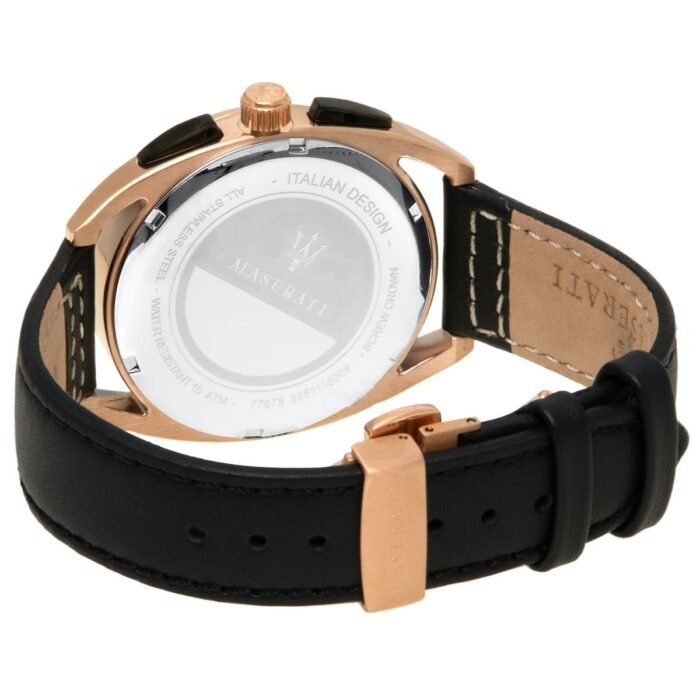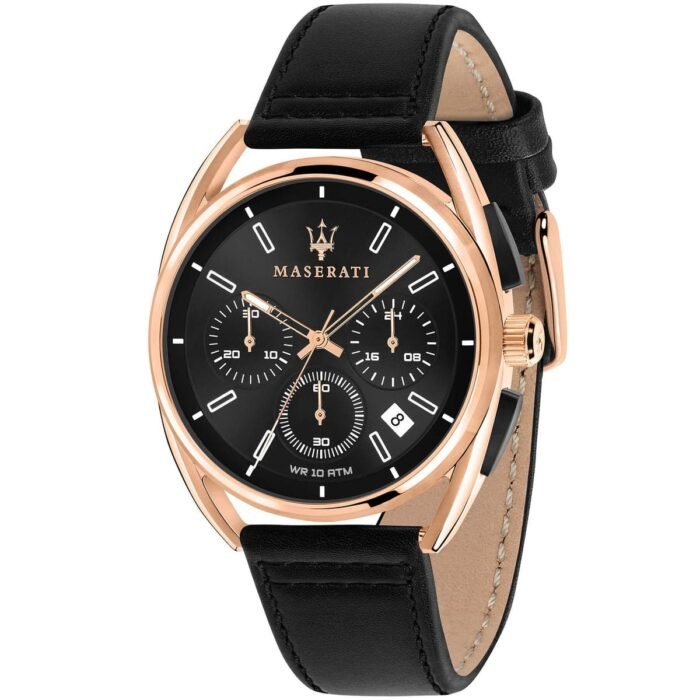ساعة مازيراتي للرجال أصلية موديل R8871632002 Trimarano لون اسود و استيك جلد طبيعي لون اسود.